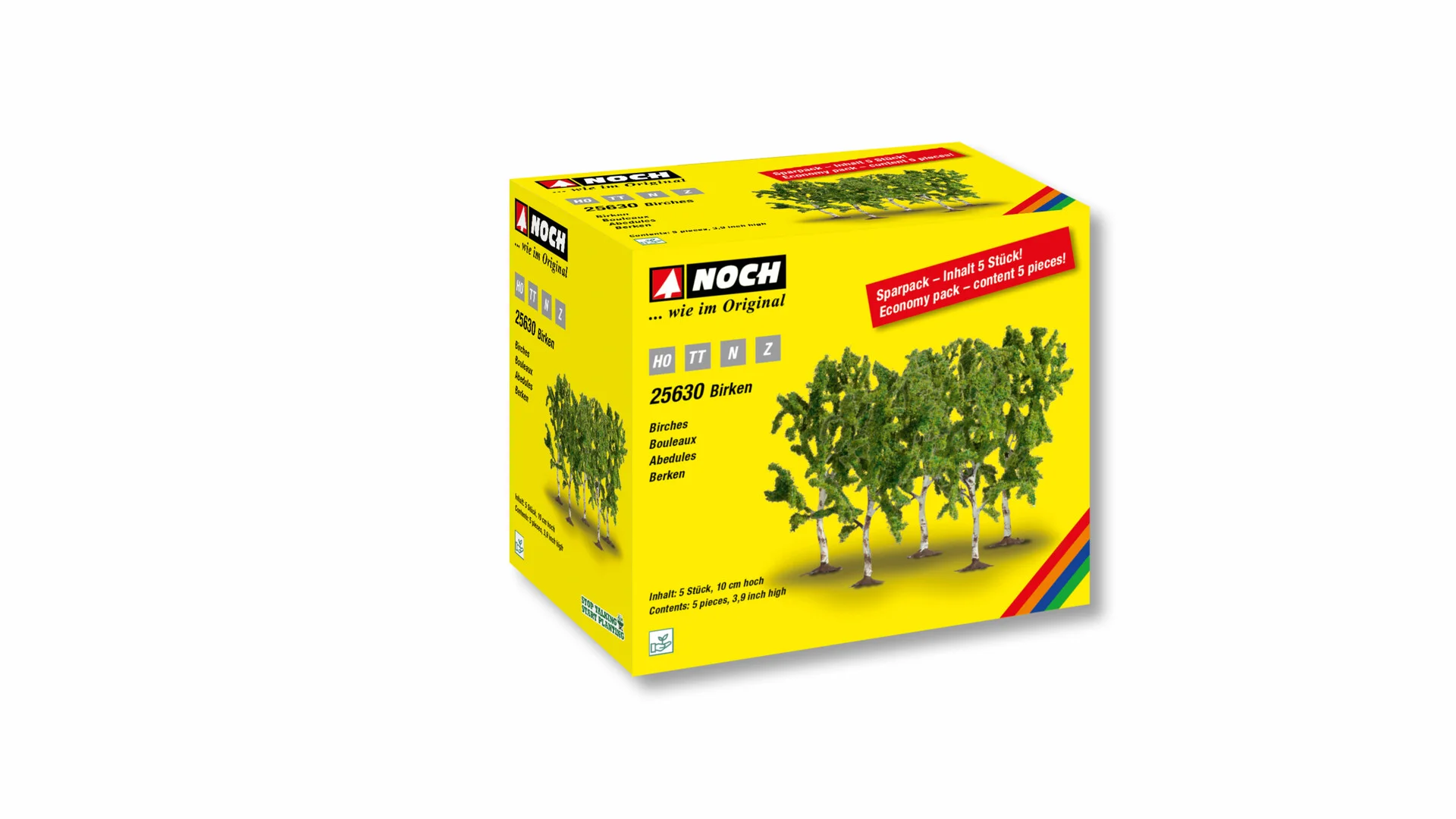 The attractive cardboard boxes contain five high-quality birches from the popular Classic tree series. With these beautiful sets, you can reforest your model landscape with great trees at a reasonable price.