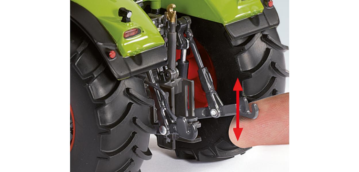 With this model update, WIKING modifies scores of exterior and interior elements that give the Claas tractor a more up-to-date look. One example is the CEBIS operator panel that now adorns the interior of the cab. The edge of the roof now comes with all-round LED lights, while hinged warning signs, which can be folded forward by 90°, can be spotted on the left and the right of the cab. Also found on the cab are new working lamps, embellishing its front, and new mirrors with a wide-angle view. The front indicators sport a fresh new design. The bonnet of the tractor can be opened, affording the beholder a view of the miniaturised drive assembly, while the upper and lower links have been designed to move. The door on the driver’s side and the rear window on the cab can be opened, while the exterior mirrors are hinged. WIKING has managed to reproduce every element of the cab with exceptional detail – from the instruments to the filigree imprint of markings, warning signs and lamps. The same precision was applied to the imprint of the hydraulic connections. To make the model even more realistic, the swing axle can be controlled with the steering wheel. Found on the rear is the coupling for connecting the cardan shaft. The tractor is outfitted with an exhaust pipe that sports a chrome look and tyres with a knobbly profile.