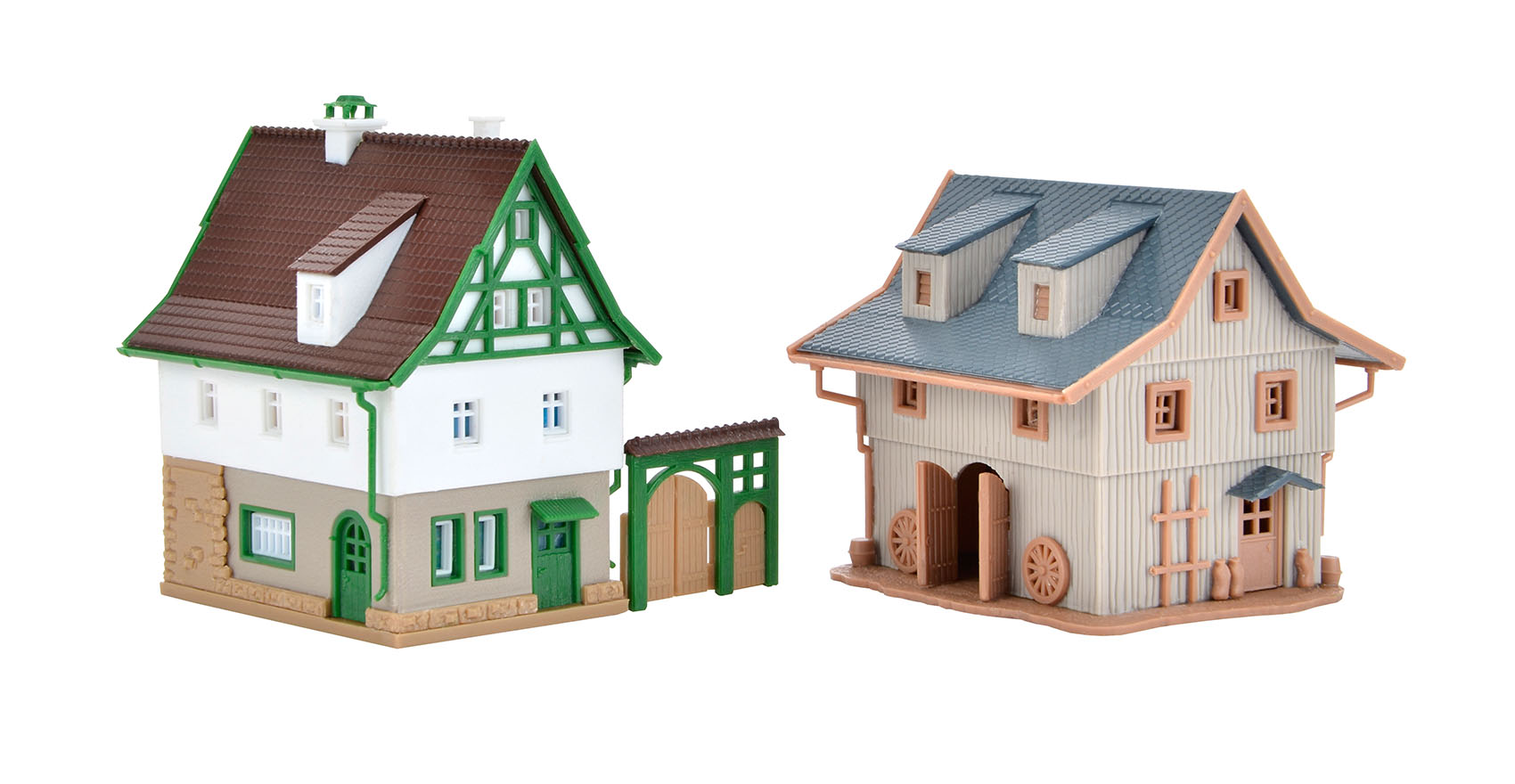 Dimensions – house L 5 x W 3,8 x H 5,3 cm, barn L 5 x W 4,2 x H 4,4 cm.