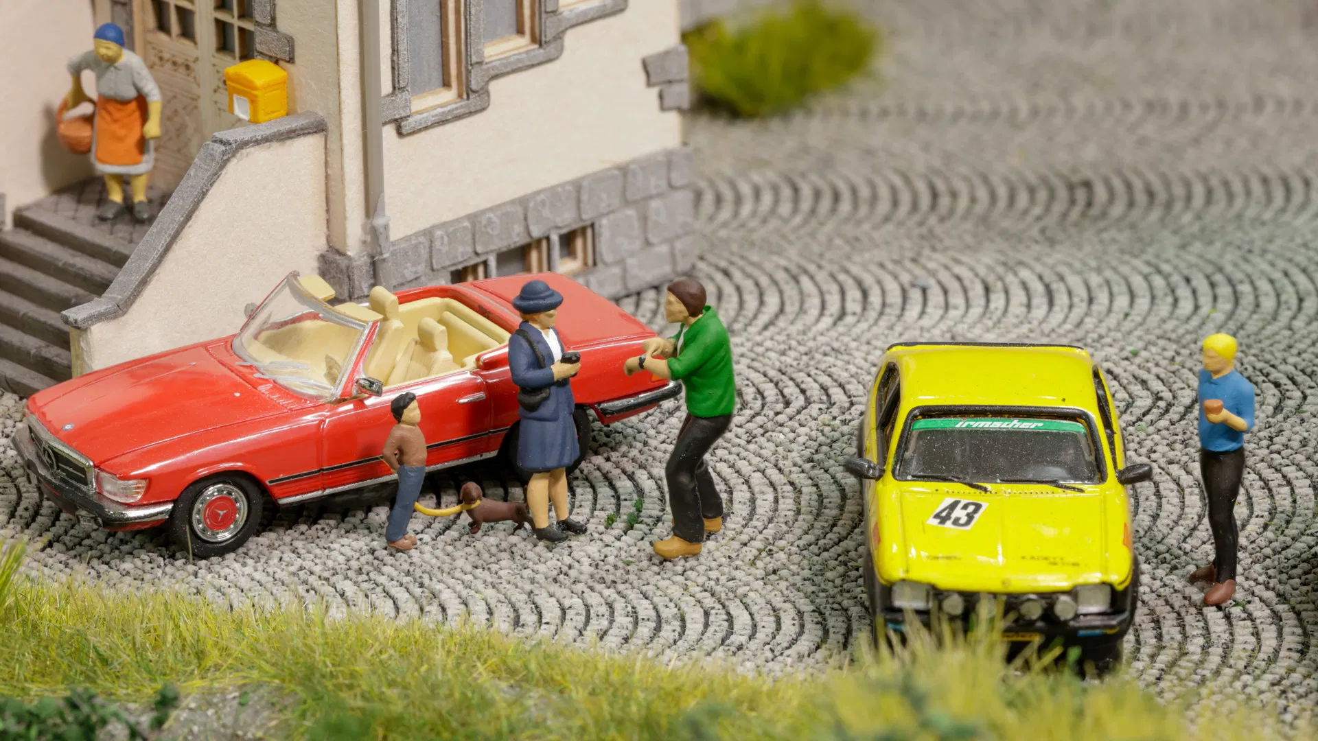 With the Funny-Scenes “Parking Offender” figure group, NOCH once again brings a humorous everyday scene to model railroading! A real eye-catcher that interprets the theme of parking in a completely different way. The annoyed man looks indignantly at his watch – perhaps he’s rushing to an appointment and doesn’t feel like getting a parking ticket? The lady in the classic outfit gets ready to write a parking ticket and remains professional and unimpressed. A curious boy watches the proceedings with a mischievous smile, while his little dog sits dutifully on a lead and calmly follows the scene.
