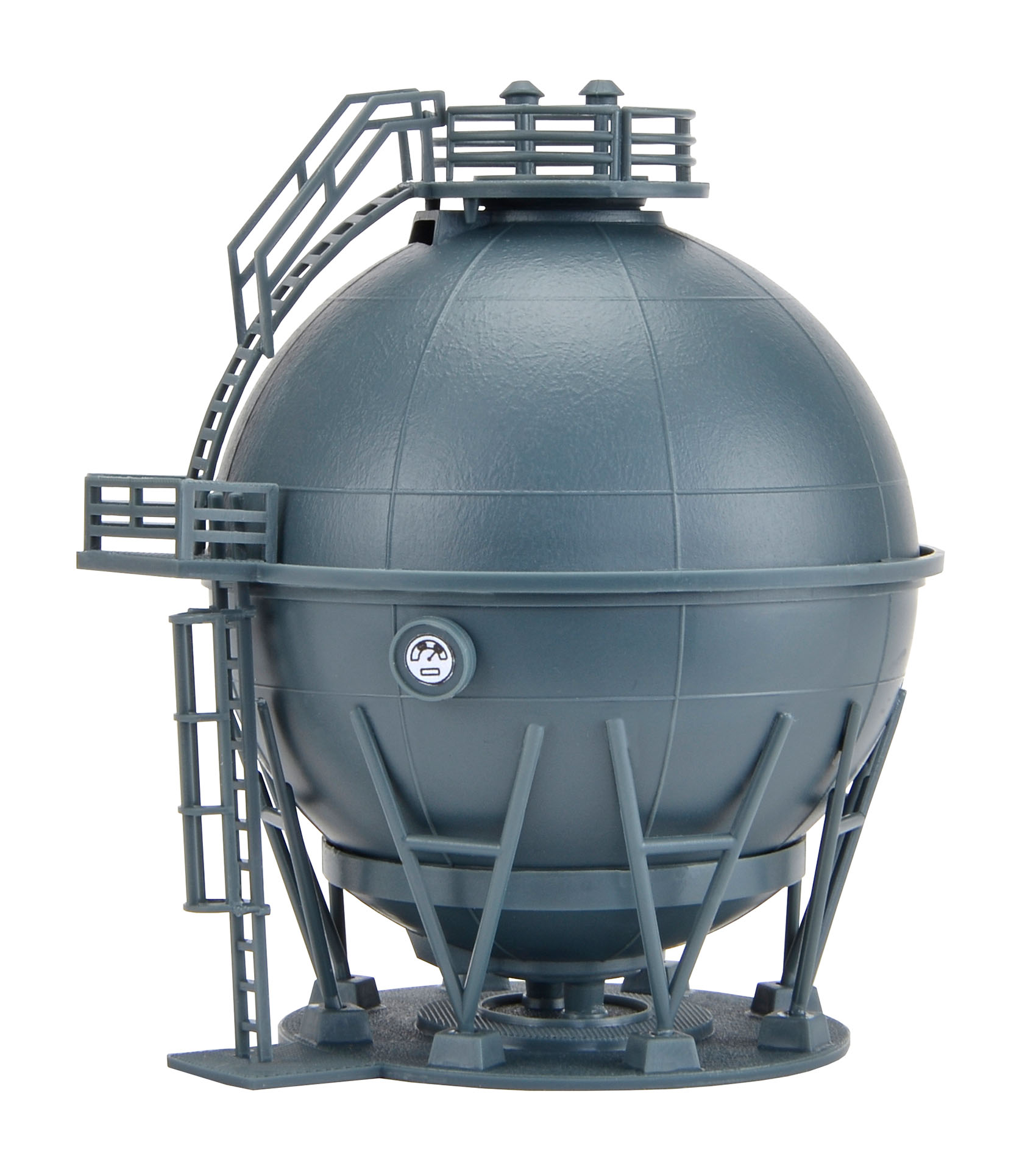 The gas tank next to the railroad line is used for temporary gas storing