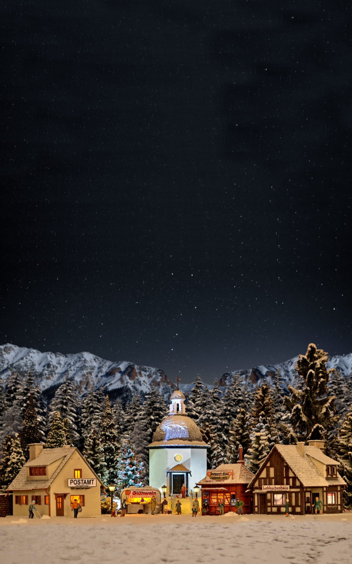 The Christmas village fits perfectly on model railroad layouts with a winter atmosphere. Or create a festive diorama with your children and grandchildren as part of the pre-Christmas craft evenings. The houses are also a feast for the eyes as a decoration on the window or mantelpiece. The village consists of the Silent Night Memorial Chapel, a Christkindl post office, mulled wine stand, gingerbread house and Bratwurst Maxe. The chapel comes with an LED for the interior lighting. In addition, a bag of artificial snow to create the winter atmosphere.