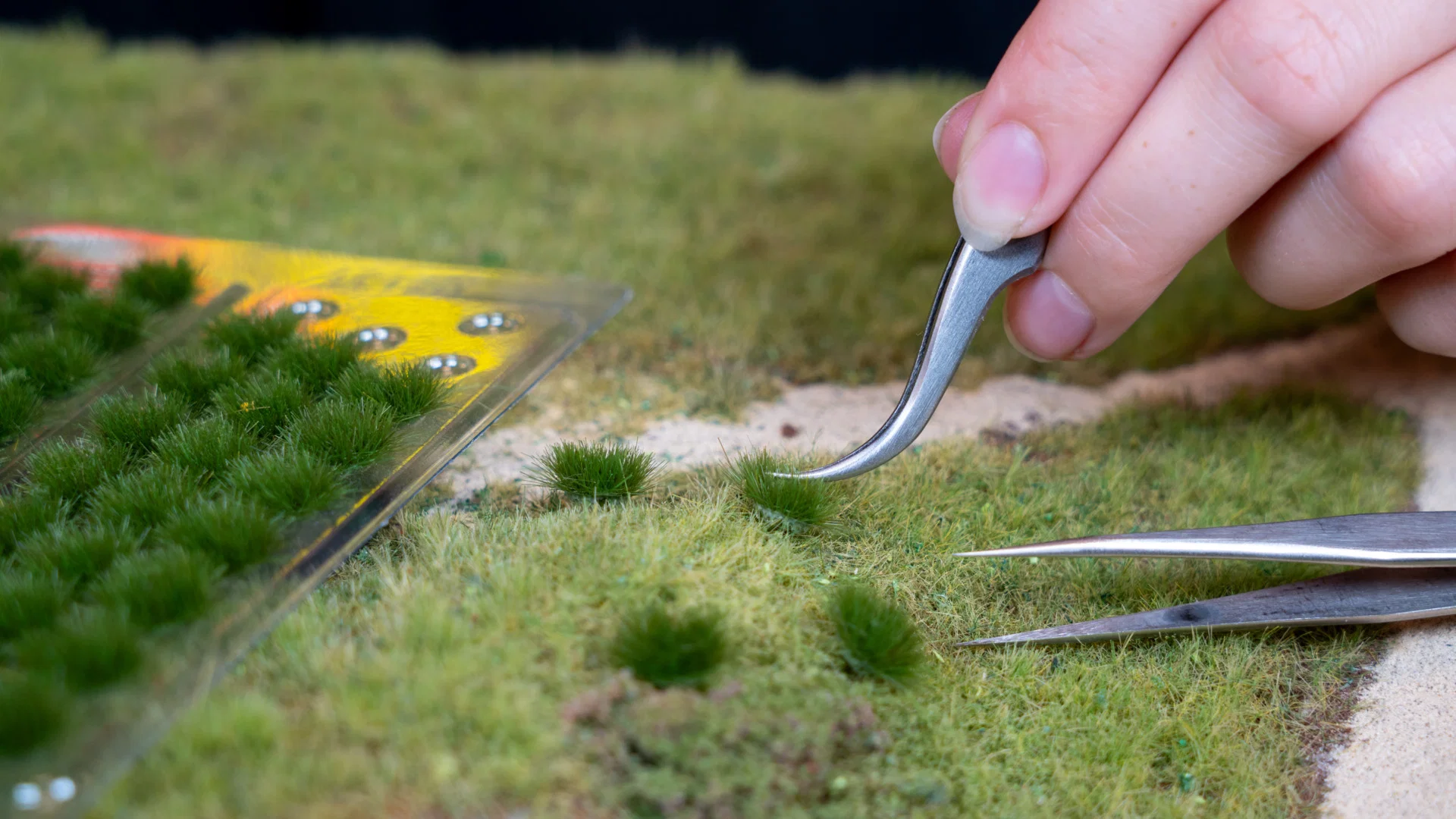The Precision Tweezers can be used to attach small parts and place tufts of grass perfectly in place. The curved design makes it easy to pick up objects from the side.