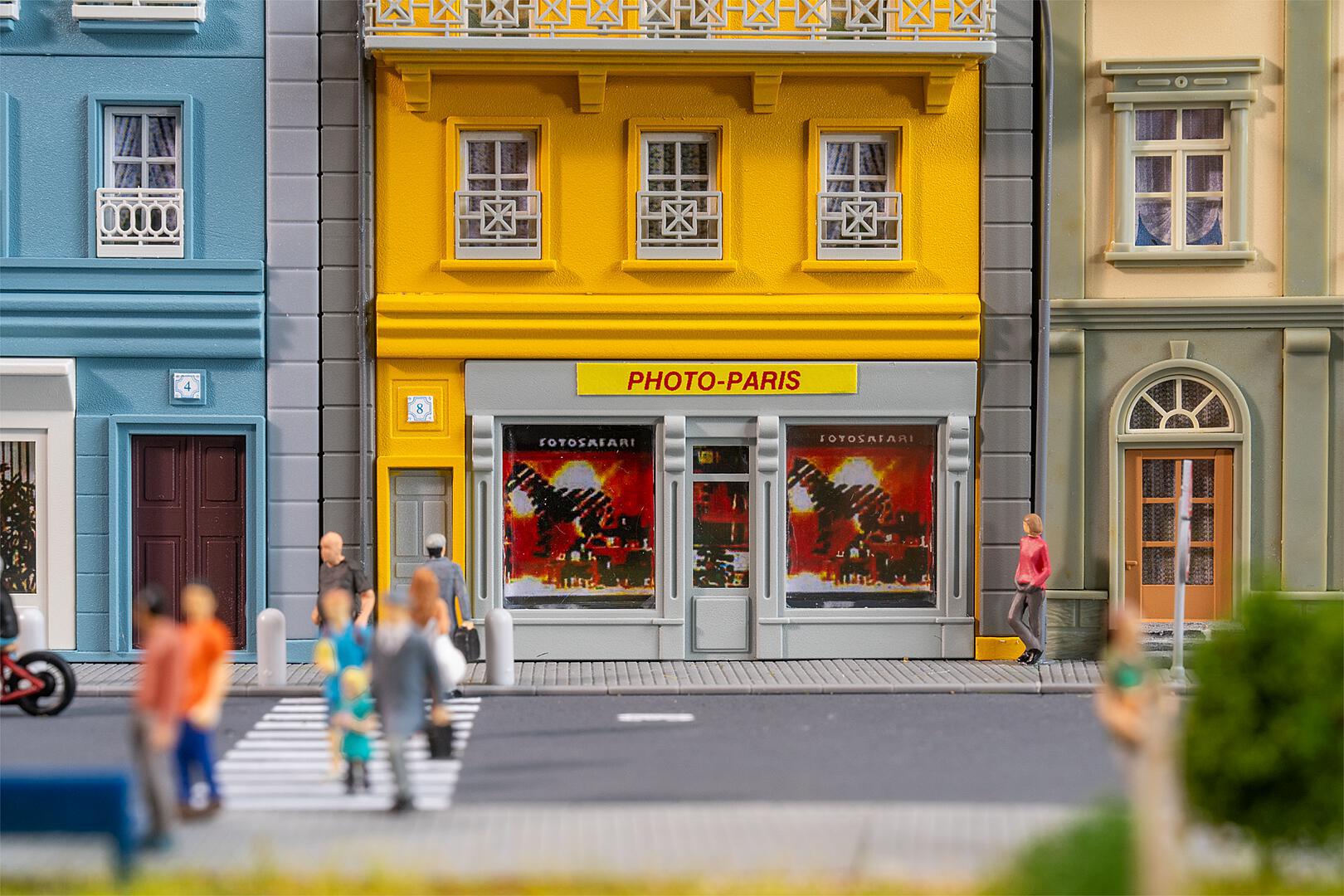 Splashes of colour for the cityscape – with their bright colours, these two townhouses bring a breath of fresh air to your miniature town: the yellow house with four storeys and its blue counterpart with five storeys complement each other perfectly and set colourful accents in the district. The classic mansard roofs lend the models a touch of historical elegance – ideal in combination with the town houses Art. 130712 and Art. 130713.