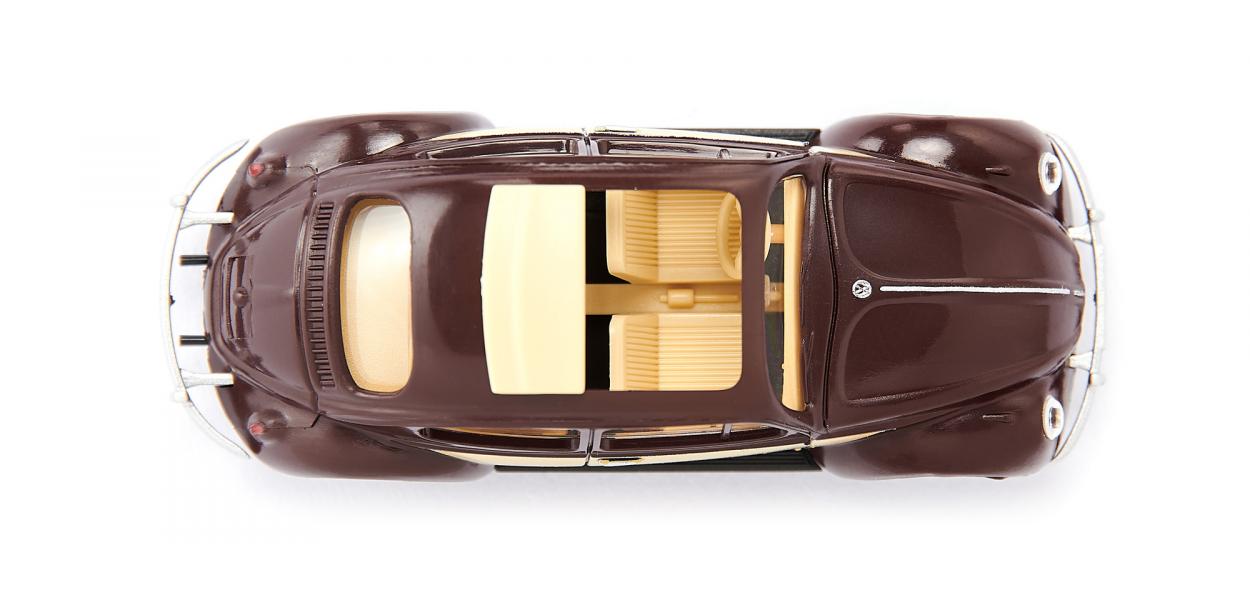 The Beetle once had a noble appearance: With the charm of the 1960s, the model of the WIKING Beetle was able to impress thanks to its chocolate-brown paintwork. Particularly striking: the flanks painted ivory on the sides with a roll top of the same colour. The Wolfsburg long-distance runner, which has been part of the WIKING traffic model program for 75 years, is also an integral part of the classic range as a 1200 model.
