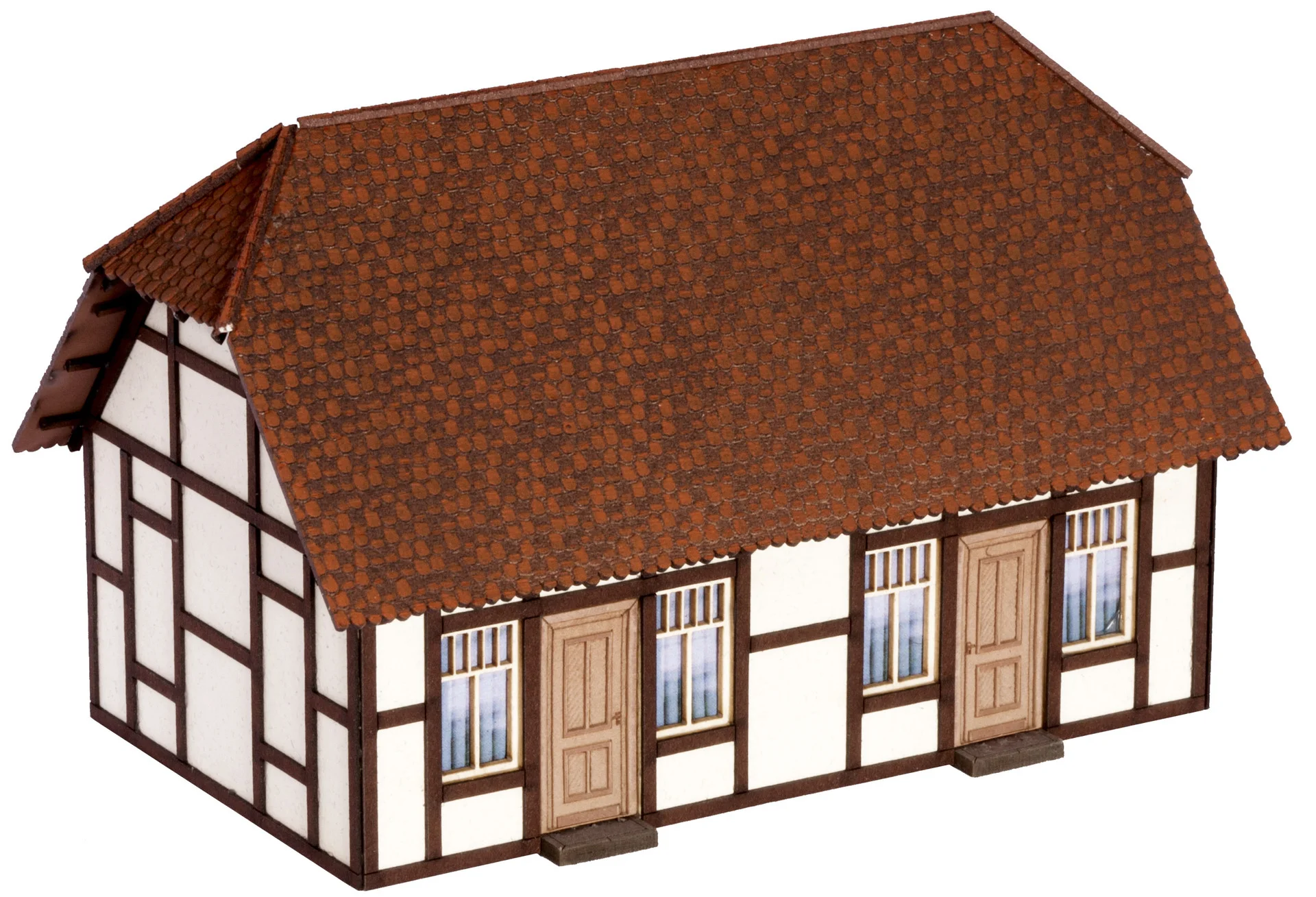 The kit is modelled on the Hauser-Bühler Wine Estate in Bickensohl in the Kaiserstuhl mountain range in Baden-Württemberg. The main building houses processing and storage rooms for the wine as well as living spaces and a small wine bar. In addition to homemade wines, the establishment also offers fitting dishes. The beautiful timber-framed building fits perfectly in rural surroundings.