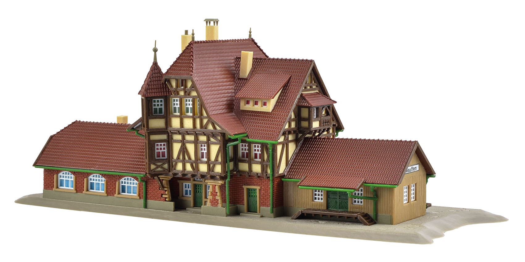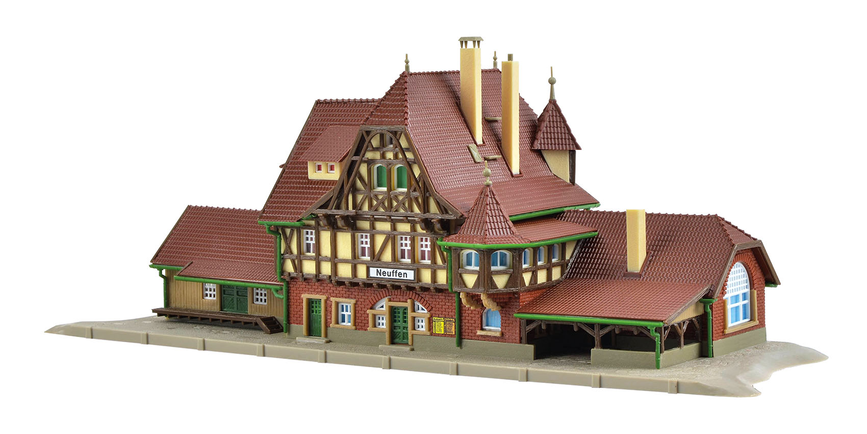 A typical country station. Terminus of the side line Nürtingen-Neuffen, close to the castle ruin Neuffen. The original was built end of 20th century and the Vollmer model shows all the details perfectly.